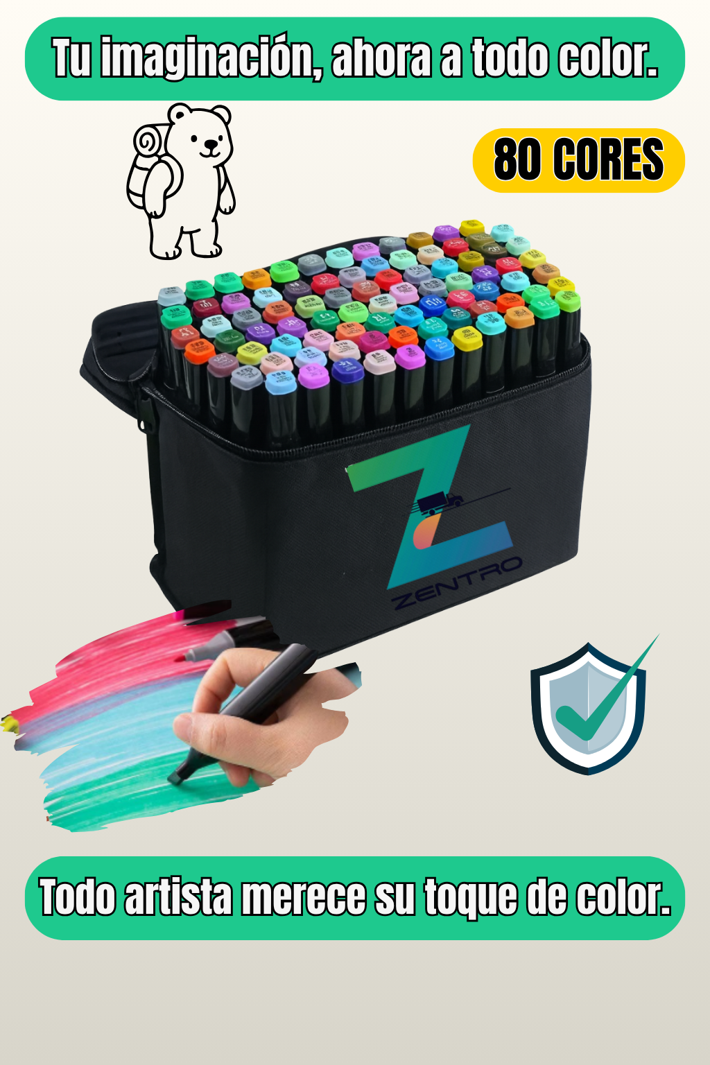 🎨 Set Marcadores Doble Punta x 80 — Colores vibrantes + estuche negro